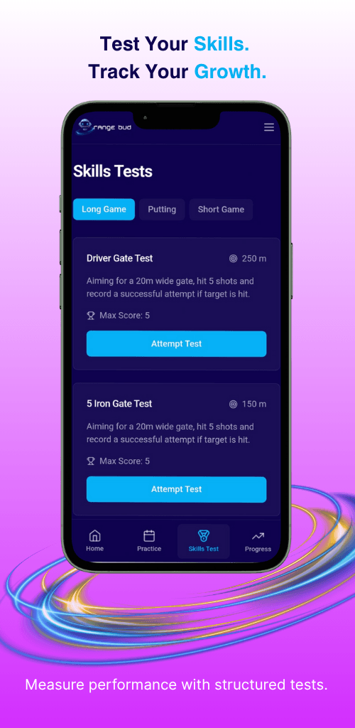 Skill tests are standardized challenges that measure your proficiency in different aspects of golf. Some tests require prerequisites to unlock, encouraging a structured learning path.